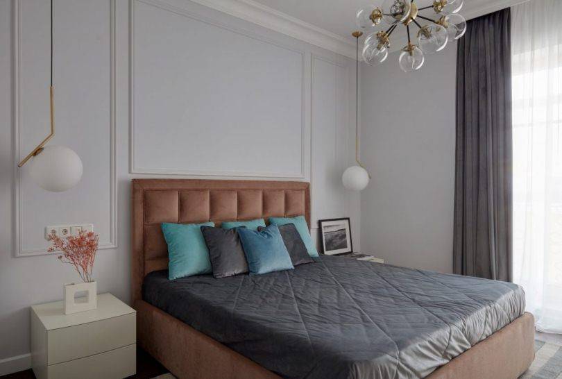 В плане ремонта спальня — одно из самых простых помещений. Здесь нет агрессивной влажной среды, большой проходимости, поэтому ограничений по выбору нет. Главным критерием будет не функциональность или практичность, а уют, эстетика.