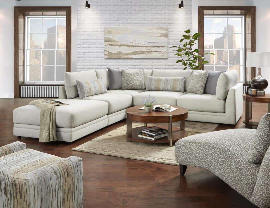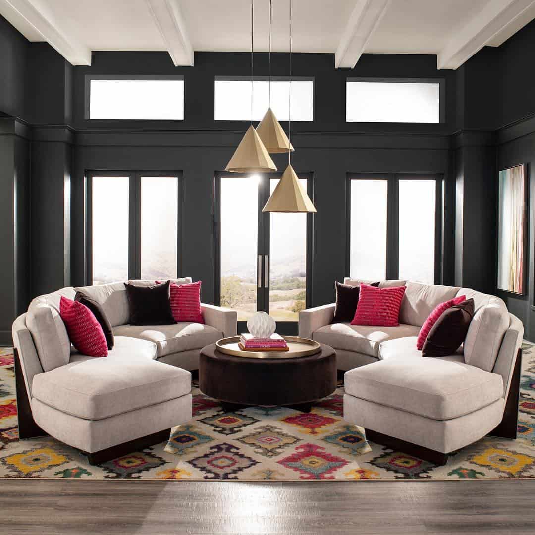 Является достаточно практичным и комфортным вариантом для гостиной. Данные изделия включают в себя несколько секций, каждая из которых выполняет определенную функцию. Модули при необходимости с легкостью меняются местами или дополняются другими элементами для создания единой органичной композиции.