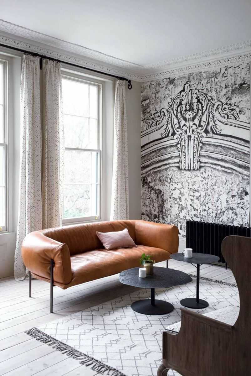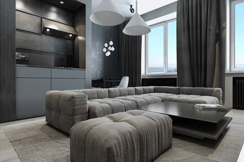 Последний пункт, но очень значимый вопрос — выбор дивана. В тренде мягкие формы: прямые углы можно встретить только изредка, обычно подлокотники скругляют или вообще их не делают. Ткань обязательно должна быть приятной на ощупь: практически не используются ткани с набивным рисунком.