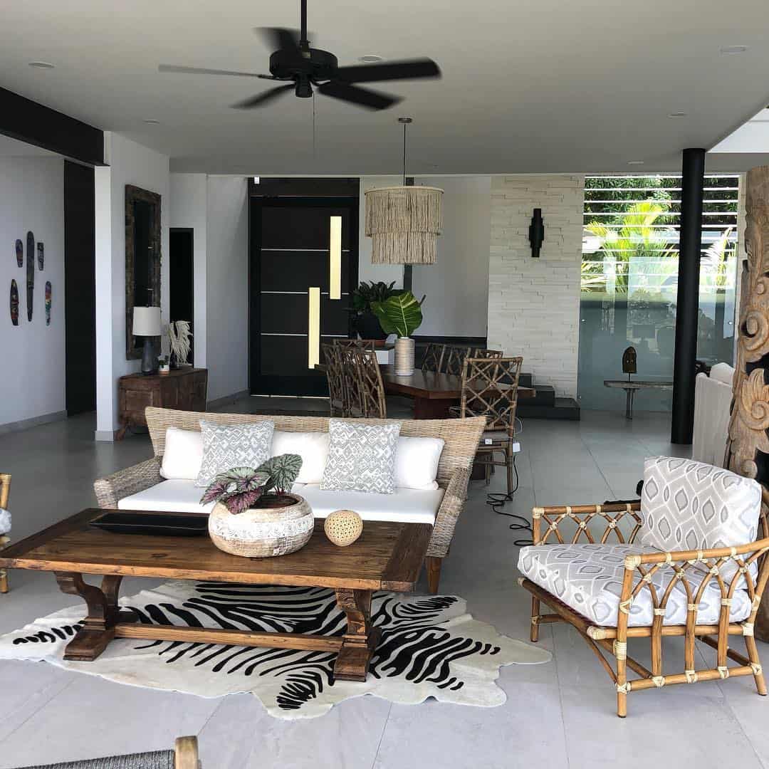 При этом от вариантов с фотопечатью лучше отказаться. Ведь цель такой идеи гостиной 2022 — сохранить преимущества опен-эйр, а не препятствование проникновению света во все уголки помещения.