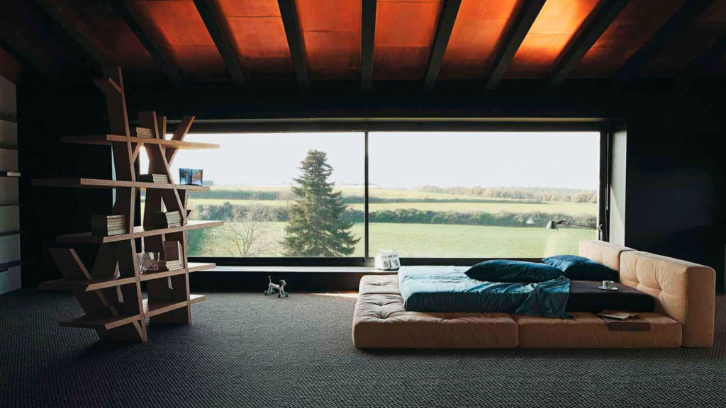 Интереснее всего, что в европейской и американской традиции кровать около окна – один из излюбленных вариантов планировки. Западные дизайнеры не обращают внимания на рекомендации фен-шуй (или не знают о них), иначе как объяснить, что этот приём используется повсеместно, в спальнях самого разного размера и формы.