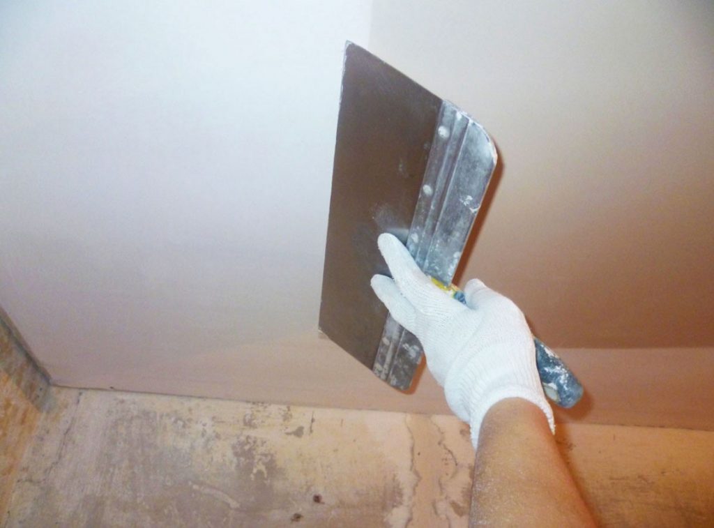 Что касается такой операции, как шпаклевание потолка из гипсокартона, то оно практически идентично с аналогичной процедурой стен, однако кое в чем есть и свои особенности. К ним можно отнести следующее: