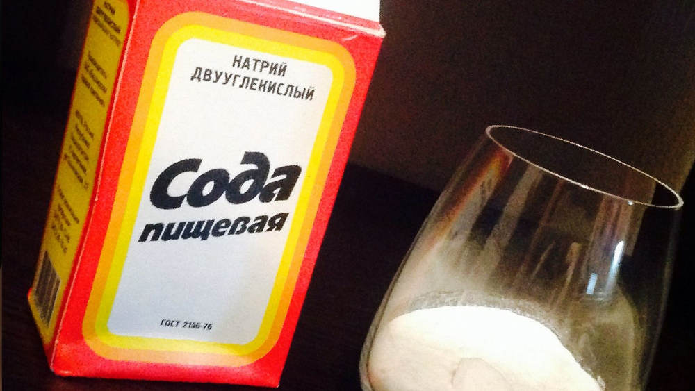 - Растворите в литре теплой воды две-три столовые ложки пищевой соды.