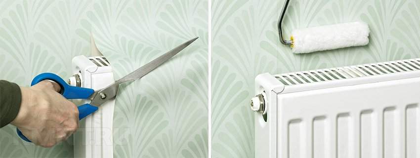 Сделать так, чтобы рисунок полностью совпадал, в таких местах довольно проблематично. И если над дверным проемом неопытный человек еще может справиться, то сделать это за батареей можно только при условии, что у вас есть соответствующий опыт или дизайнерские навыки.