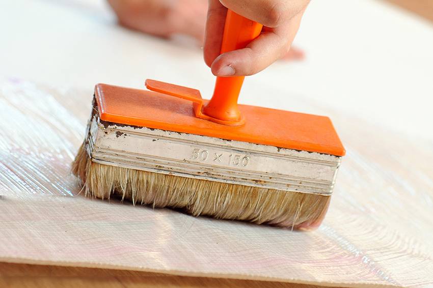 Для наклеивания полотен в труднодоступных участках (в углах, около розеток, дверных проемов, у радиаторов отопления) используют небольшую кисть. Клей наносят на компактные участки. Материалы предварительно нарезают и совмещают на поверхностях.