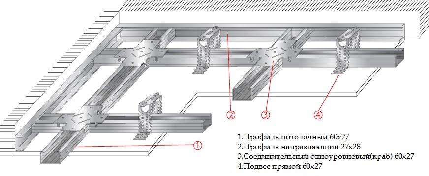 Обрешетка под одноуровневый потолок