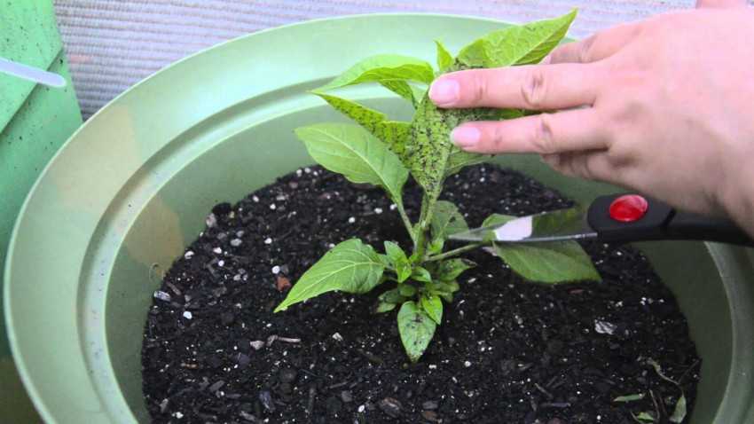 Формирование куста перца заключается в прищипывании, удалении лишних бесплодных побегов и обрезании. После посадки и приживления кусты осматривают, чтобы они были здоровыми и без вредителей. Бесплодные нижние побеги и листья, находящиеся на штамбе до первой развилки, удаляют, обеспечивая кустам нормальную вентиляцию и освещение.