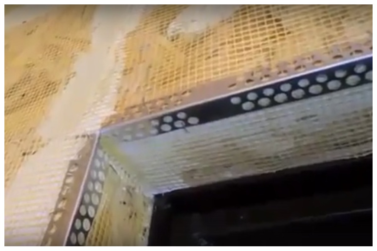 Сетку начинают клеить с откоса, предварительно проверив чтоб точки состыковок не заходили на углы. Серпянку клеят, а потом проходятся степлером следующие 10 м.