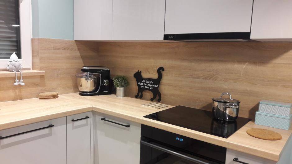 Начинайте клеить из наименее заметных мест, чтобы дать себе возможность попрактиковаться. Производители рекомендуют использовать глянцевые наклейки для кухни, которые более устойчивы к влаге и грязи.