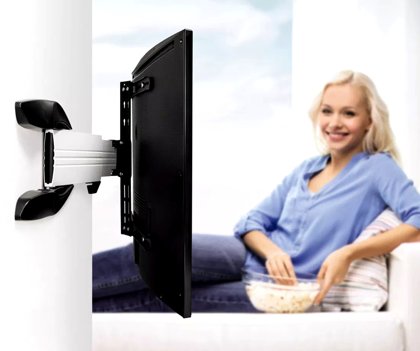 Они бывают трех видов – фиксированные, наклонные и наклонно-поворотные. Выбирать кронштейн следует исходя из места установки телевизора.