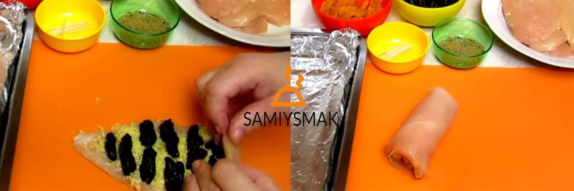 С каждой грудки срезать малое филе, которое находится с нижней стороны. Затем с помощью маленького ножа сделать один продольный надрез на самой грудке, но, не прорезая до конца.