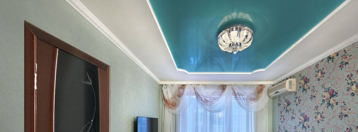 Для выделения необычного натяжного потолка, можно применить широкий элемент декора, который визуально увеличит высоту потолка. Плюс применения такого изделия в том, что внутренняя поверхность приклеивания достаточно большая, чтобы надежно закрепить его на стене.