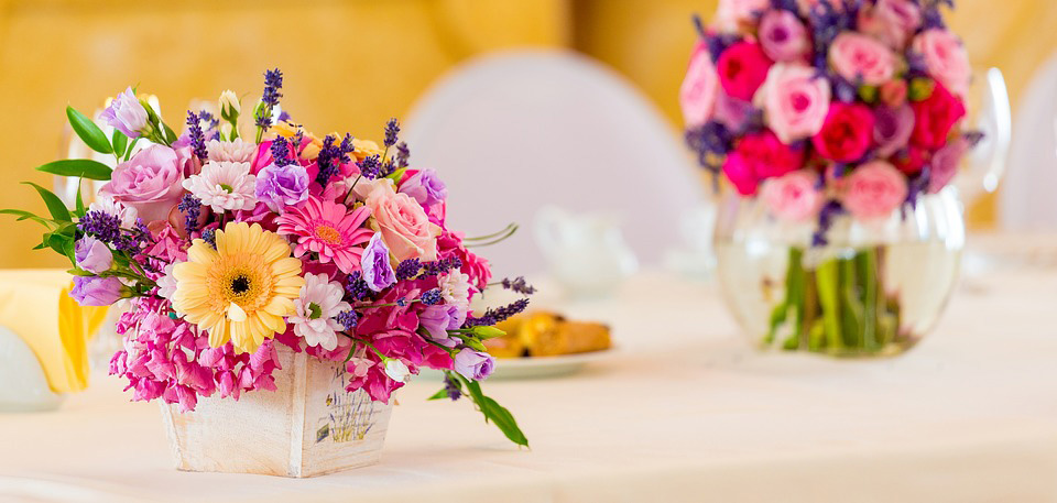 Совсем недавно декорирование цветами заключалось в размещении их по территории ресторана в вазах, однако современные флористы предпочитают украшать зал следующими способами: