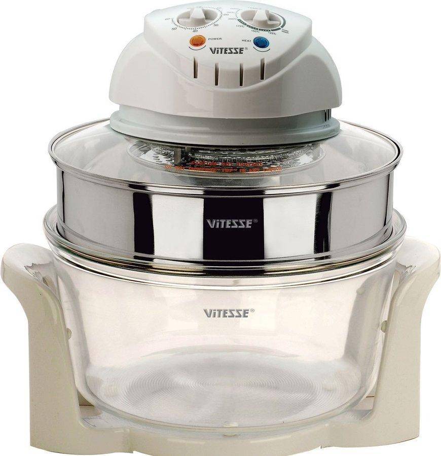 Третье место занимает Vitesse VS-406. Аэрогриль Vitesse VS-406 отличается от лидеров рейтинга типом нагрева. Он осуществляется не ТЭНом, а галогенным нагревательным элементом. За распределение тепла по чаше отвечает вентилятор. Чаша ещё большего объёма, чем у Hotter (12 л) может быть увеличена до 17 л с помощью расширительного кольца.