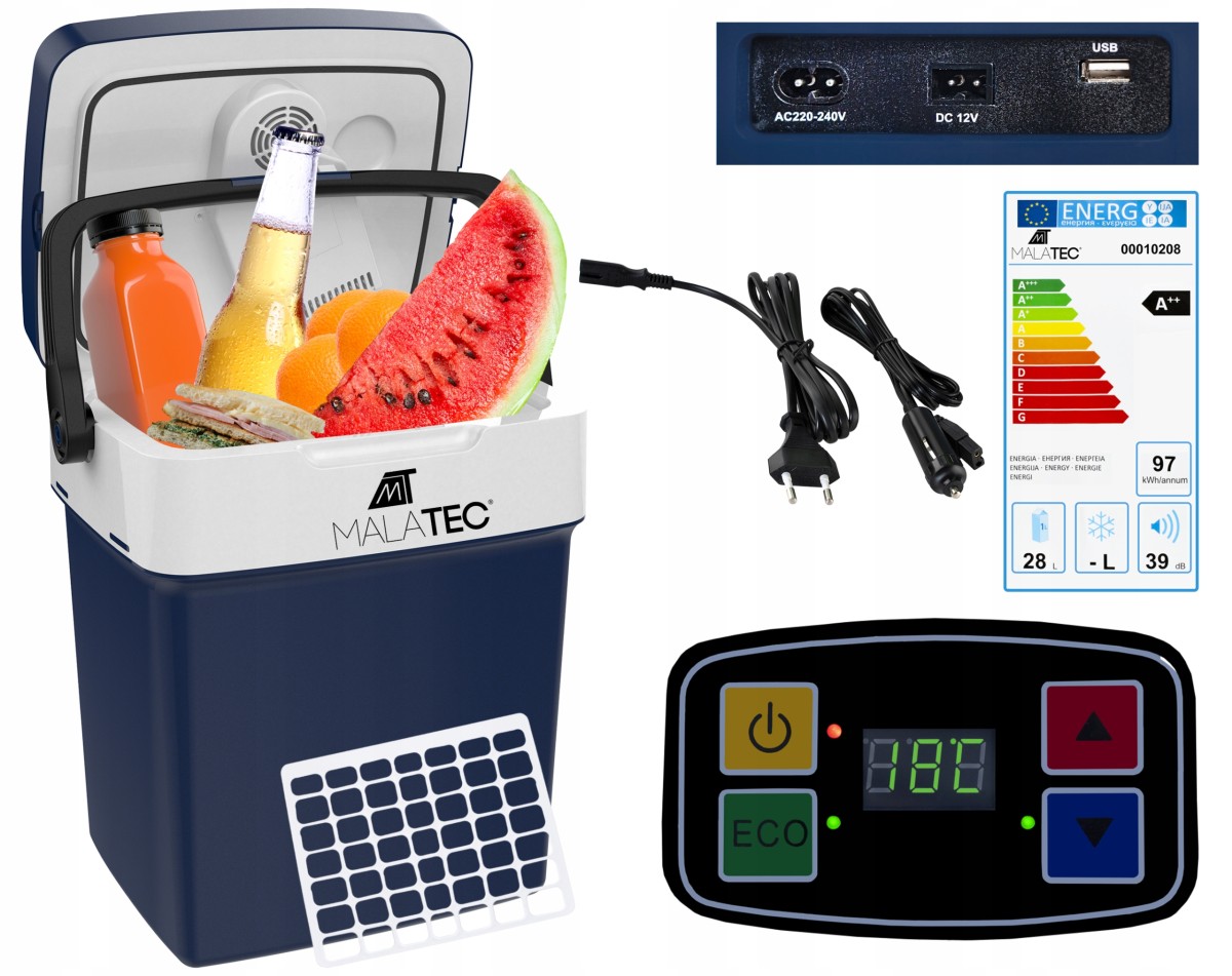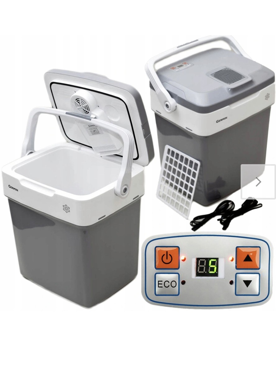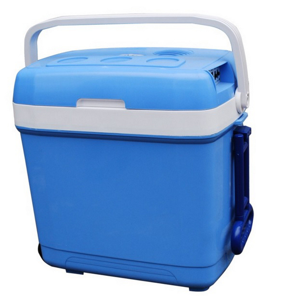 холодильники с максимальным охлаждением до −15 градусов. По внешнему виду они представляют собой термоконтейнер, с вентилятором, радиатором, охлаждающими элементами в виде аккумуляторов холода. Они компактны, занимают мало места в машине и практически бесшумны. Их недостатком считается небольшая вместимость (до 50л). Разогреть пищу в таком приборе можно до температуры +70°С. Автохолодильники этого типа питаются от электросети авто, или от бытовой магистрали. В такие холодильники продукты лучше класть уже охлажденные.