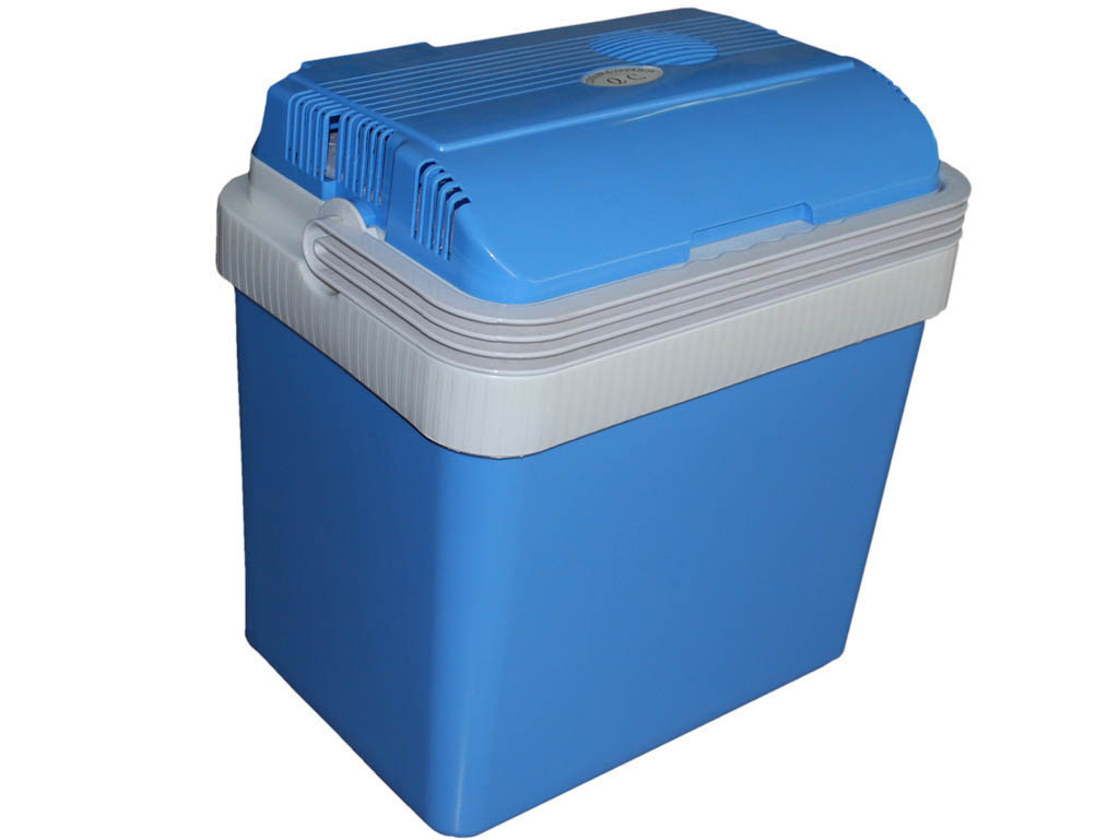 - Изотермические холодильные устройства, к которым относятся холодильные сумки, контейнеры, намного дешевле, чем автомобильные холодильники. Они практически работают без источников питания, отлично справляются с удержанием внутри них температуры тех продуктов, что положены. Зимой можно долго сохранять горячую пищу (для охотников или рыболовов, например), а летом охлажденные или замороженные предварительно продукты или напитки. Начальная температура продуктов внутри них сохраняется до 12 часов, вместимость их может быть 2,5-120л. Такие контейнеры, сумки делают из термоизоляционных материалов, а охладителем выступает лед или аккумуляторы холода типа небольших пластиковых емкостей, содержащих теплоемкий гель, предварительно охлажденный. Большие пенопластовые термоконтейнеры с изотермической прослойкой могут поддерживать необходимую температуру до 2 суток (есть новые модели сохраняющие температуру даже до 10 суток).