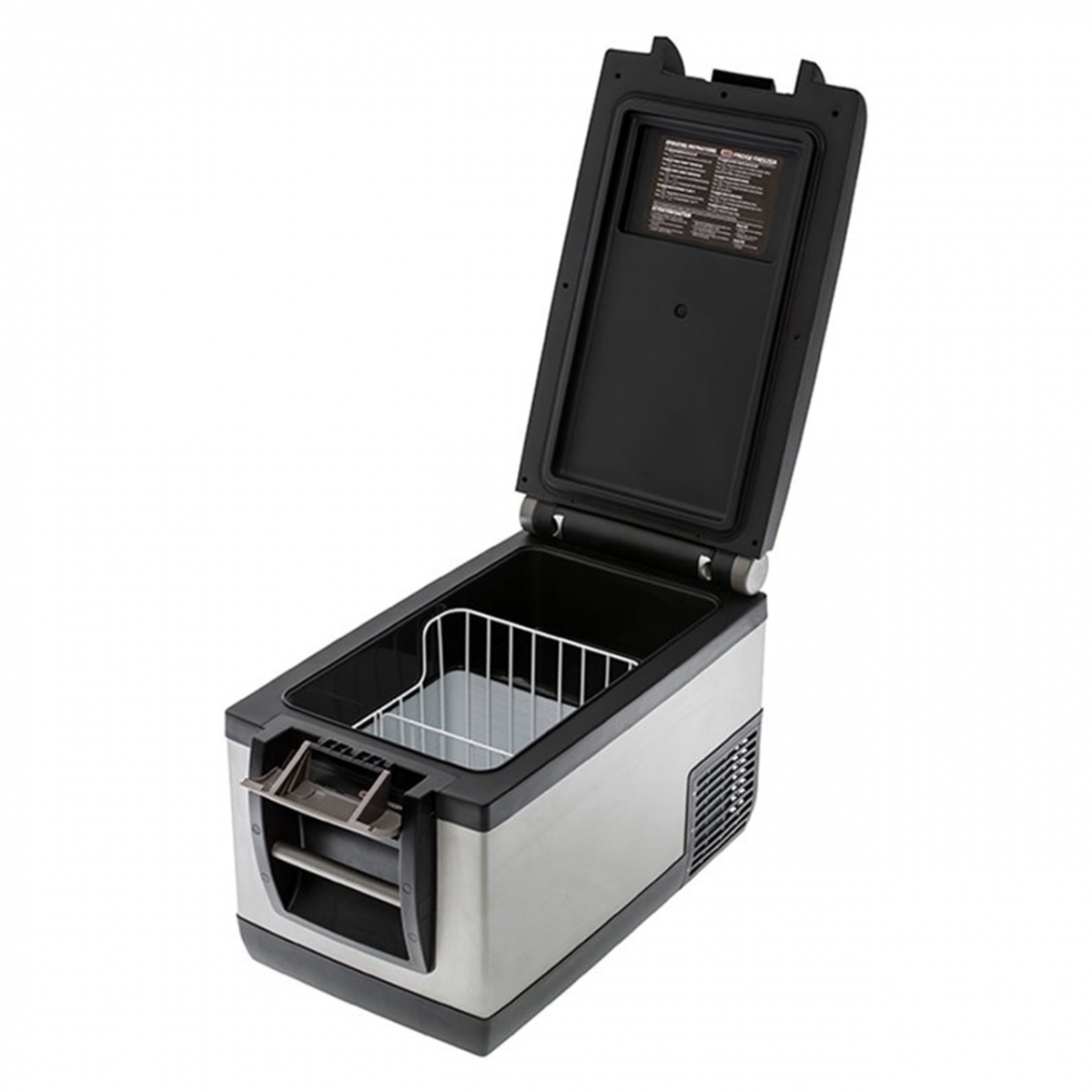 - Компрессорные (или компрессионные), тяжелые устройства, работающие по типу домашних агрегатов. Они способны охлаждать продукты до −18 градусов, сохраняют холод после выключения еще до 6 часов. Эти холодильники обычно громоздкие, плохо переносят бездорожье, чувствительны к любой вибрации. Их чаще применяют для перевозки лекарств или дальнобойщиками для своих дальних поездках. Вместительность их достаточно большая до 75 л.