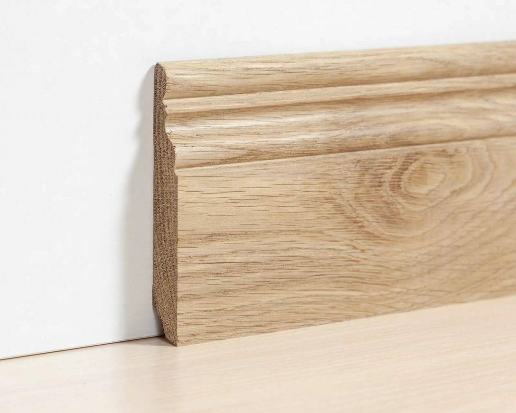 Стандартные плинтуса, которые выполняются, чаще всего, из сосны, дуба или других пород натуральной древесины. Используются в жилых помещениях ещё с советских времён.