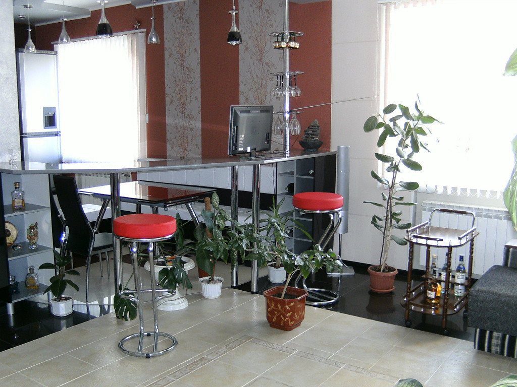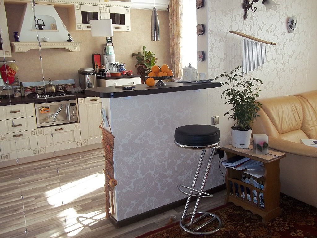 Традиционные изделия часто имеют стандартные размеры, тогда как для барных изделий ситуация обратная. Их подбирают строго исходя из размеров столешницы. На кухне или на границе между кухней и обеденной зоной устанавливаются барные стойки разной высоты. Отдельную конструкцию чаще всего поднимают на 110 — 130 см от пола, встраивают в гарнитуру или переделывают из подоконника — на 85 — 90 см.