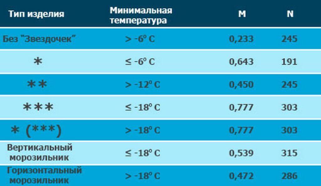 Низкотемпературные камеры и морозильники выпускают с замораживанием до -6°C (1 звездочка на маркировке), до -12°C (2 звездочки), до -18°C (3 звездочки).