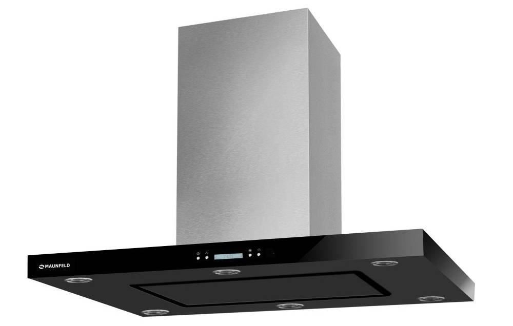 Maunfeld Harbour 90 – более дешевый экземпляр, отдать за который нужно 38 тыс. руб. Обладает незамысловатой формой – плоский раструб на коробе в виде прямоугольника, что является удобной изюминкой – наверх можно сложить много маленьких полезных кухонных деталей. Аппарат способен вывести до 1150 к.м. воздуха в час и оснащен сенсорной панелью.