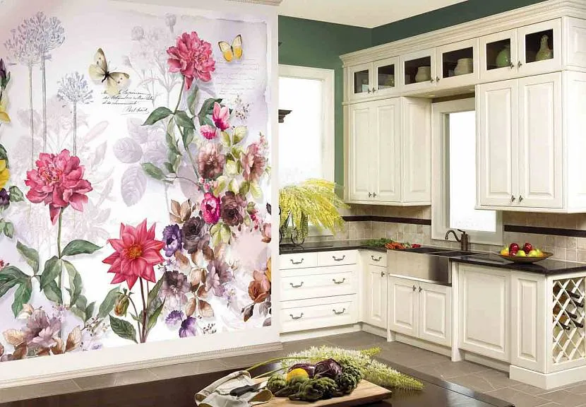 Фотообои, изображающие цветы на кухонной стенеИсточник 100oboi.ru