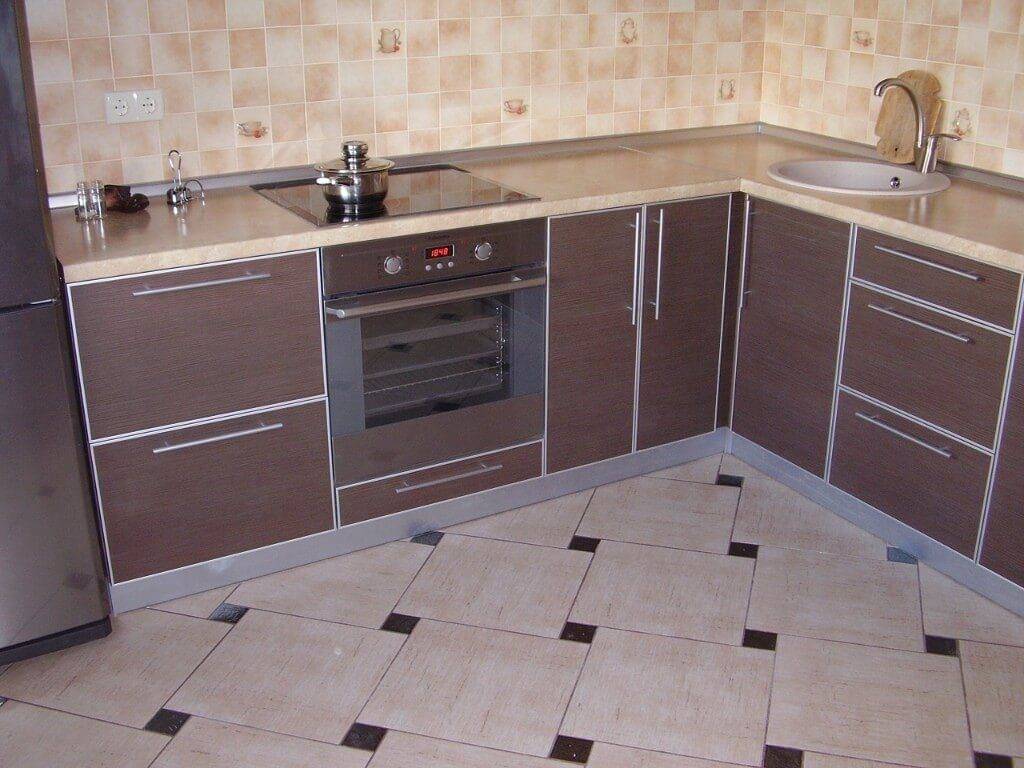 Если кухня небольшая, то рекомендуется укладывать светлое напольное покрытие