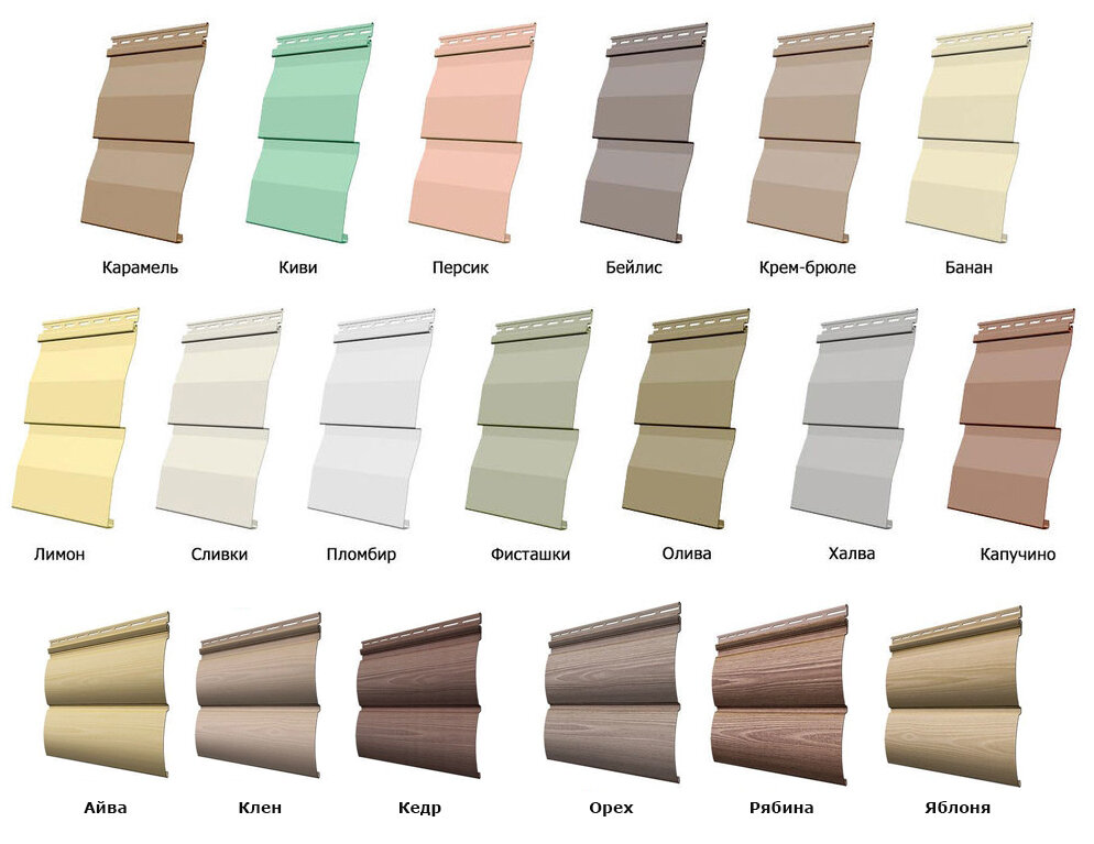 - цветовая гамма металлического сайдинга — весь спектр красок RAL. В это же время виниловая отделка предлагается только в ограниченном наборе расцветок. При этом от конкретного типа профиля и изготовителя зависит доступная гамма красок.