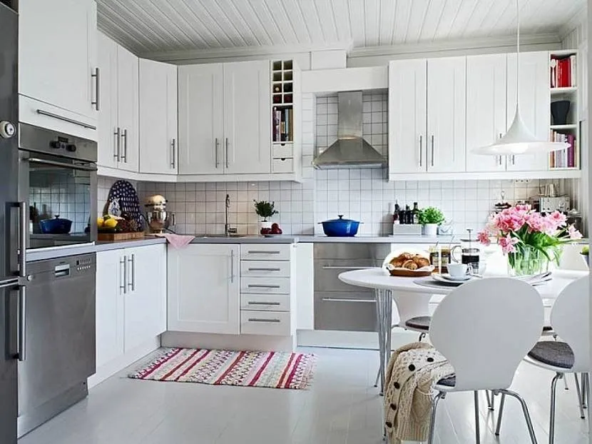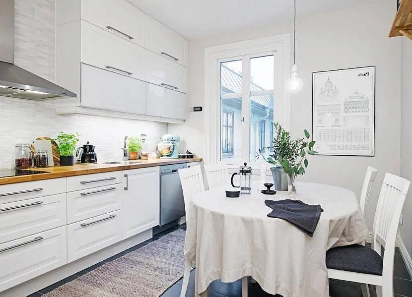 Скандинавский стиль интерьера в кухне белого цветаИсточник roomester.ru