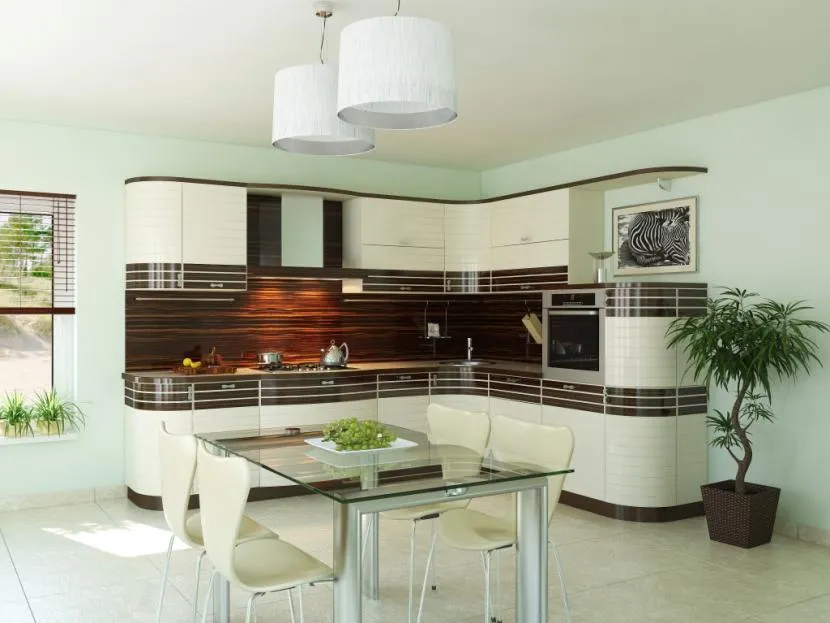 Такой вариант интерьера гармонично вписывается в светлые кухни, окна которых выходят на солнечную сторону. Обладают характерными чертами: