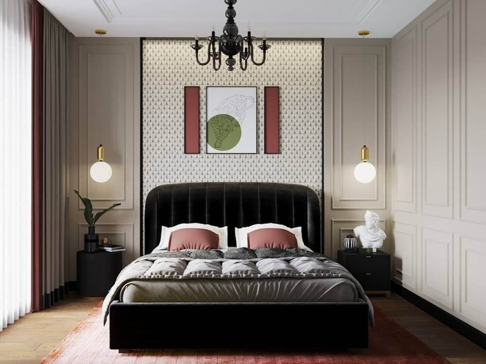 Проект квартиры в неоклассике. Габариты спального места 200х140 см. Дизайнер Светлана Шалыго