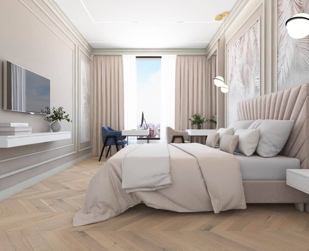 Проект квартиры в неоклассике. Габариты спального места 200х140 см. Дизайнер Светлана Шалыго