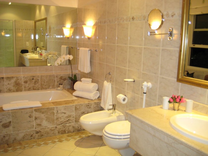 Для компактных ванн оптимально использование нежных оттенков (молочный, нежно-золотистый, цвет слоновой кости). Отделка дополняется плитами с акцентными деталями в виде рельефа, тонкого орнамента. Акценты помогают создать плиты с грубой фактурой под светлые породы дерева, под мрамор либо стилизация состаренных поверхностей. Укладка плитки в ванной светлого цвета в стиле прованс, может включать блоки с декупажем или просто повесить зеркало в ванной с необычным дизайном.