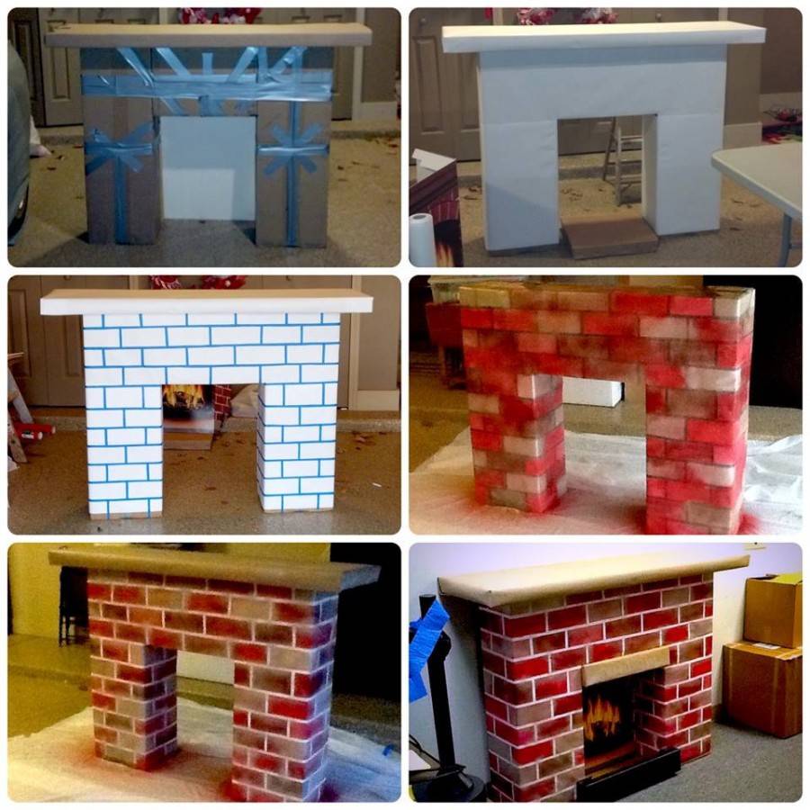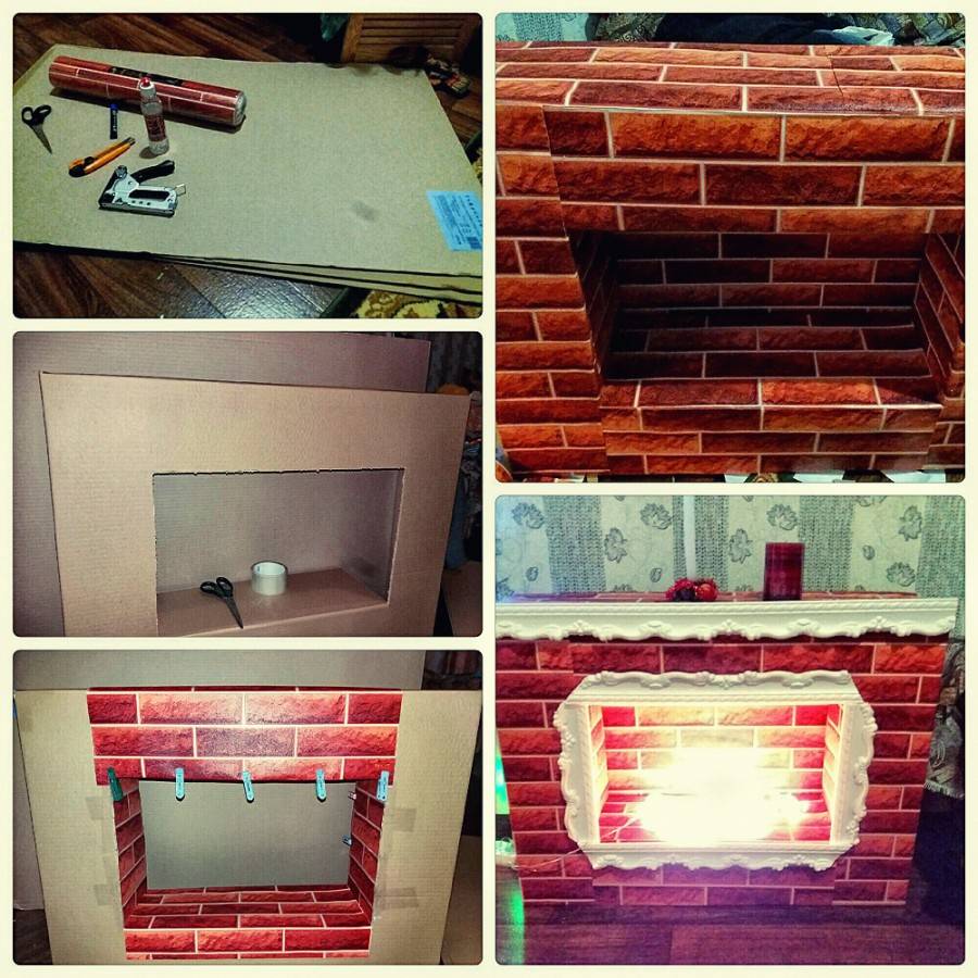 В качестве альтернативы картону для полочки можно вырезать планку из не толстой фанеры. Еще дин вариант полочки – это пенопласт. Материал легкий и прочный. Такая полка также позволит скрепить каркас камина.