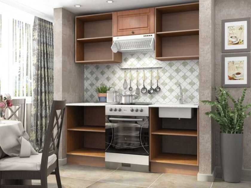 - шкафы чередовать с открытыми полками, чтобы избежать ощущения нагромождения мебели;