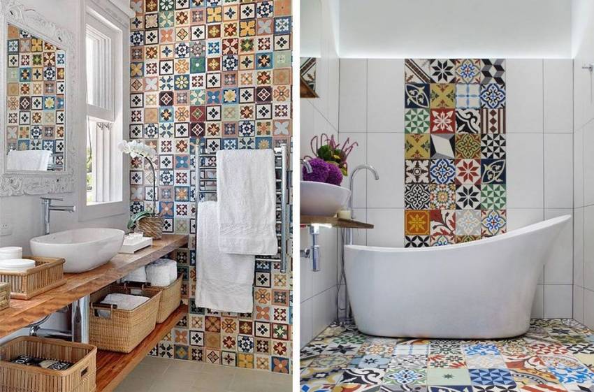 Одно из самых современных и необычных решений – выбор плитки в стиле пэчворк. В этом случае она состоит из отдельных элементов, имеющих различный рисунок или размер, что позволяет создать эффект лоскутного одеяла. Для того чтобы добиться этого эффекта, совсем необязательно приобретать специальные наборы, которые обычно имеют немалую стоимость. Вполне возможно использовать для этого несколько отдельных видов плитки, которые хорошо сочетаются между собой.