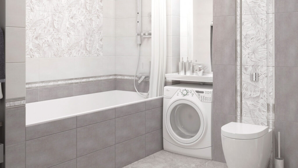 Примеры дизайна разных коллекций керамической плитки Альма Керамика в интерьере ванной комнаты: