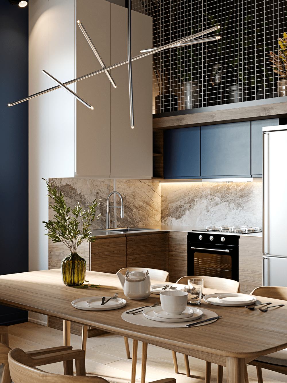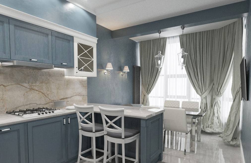 Белый и синий цвет в интерьере современной кухни