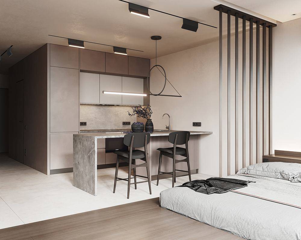 - В некоторых случаях уместными будут барные стойки – они не только экономят пространство, но также выглядят стильно и современно.