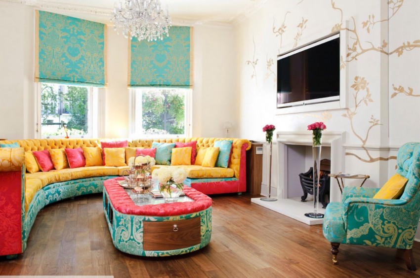 сочетание дополняющих цветов (дополняющими называются цвета, которые находятся на колесе цвета напротив, то есть, являются самыми контрастными друг для друга. Например, красный – зеленый, синий – оранжевый, желтый – фиолетовый. Использовать подобные сочетания нужно очень аккуратно, ведь вы не хотите, чтобы от буйства цветов в вашей комнате начинали болеть глаза).