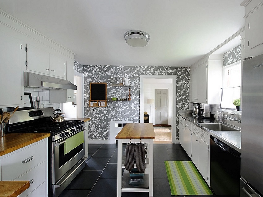 Просмотрите фото интерьеров кухонь, которые созданы с помощью комбинированных обоев: