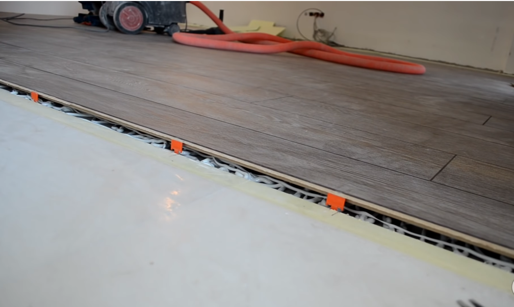 Иногда вместо того, чтобы ломать голову над созданием стыка без порожка, проще вовсе отказаться от идеи комбинирования разнородных покрытий. Например, если вам визуально нравится дерево, то его можно заменить практичным керамогранитом под дерево вместе с системой теплых полов. Только нужно предварительно разобраться, чем пилить керамогранит