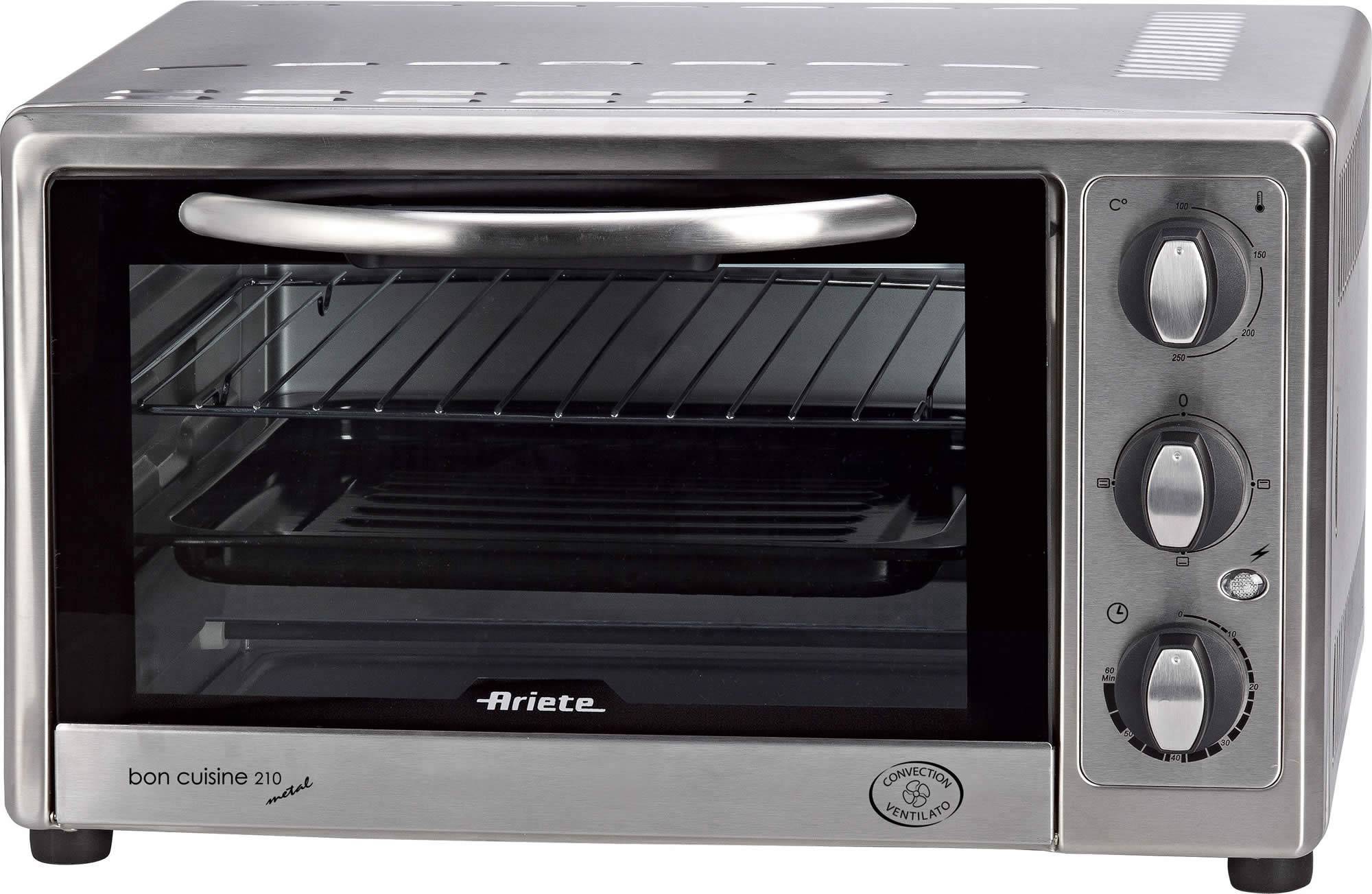 Вариант для совсем уж маленьких квартир, где важен любой квадратный метр. Хорошая мини-печь от Ariete совмещает в себе функции духовки и варочной поверхности. Конфорки в печи 977 Bon Cuisine 380 располагаются сверху, а их диаметр равен 15 и 18 см. Объём духовки составляет внушительные 38 литров, поэтому одновременно запечь здесь можно достаточно много блюд. Максимально достижимая температура внутри – 230 градусов.