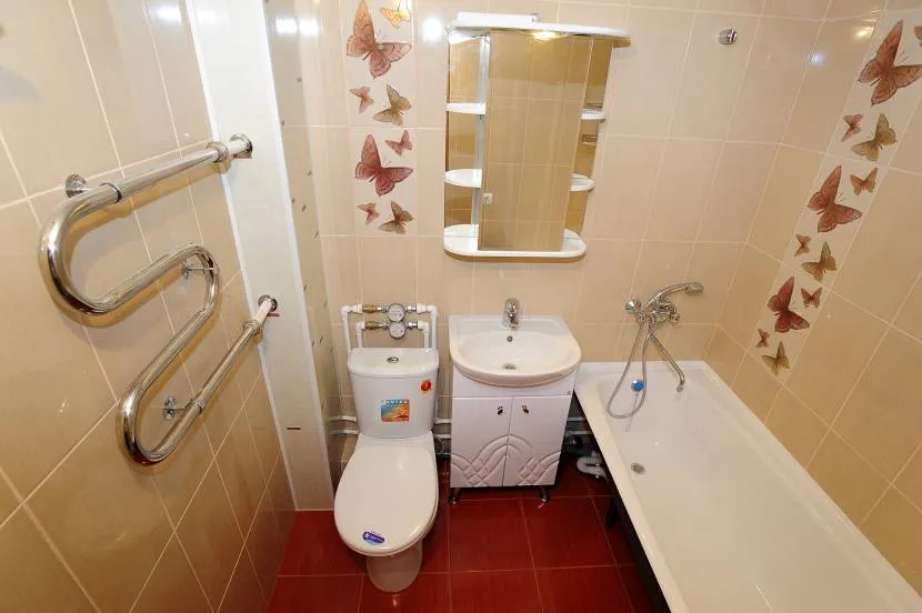 Ванная комната богата на всевозможные коммуникации. На всеобщее обозрение здесь выставлены трубы канализации, горячего и холодного водоснабжения, а также дополнения в виде полотенцесушителя или отопительной системы.