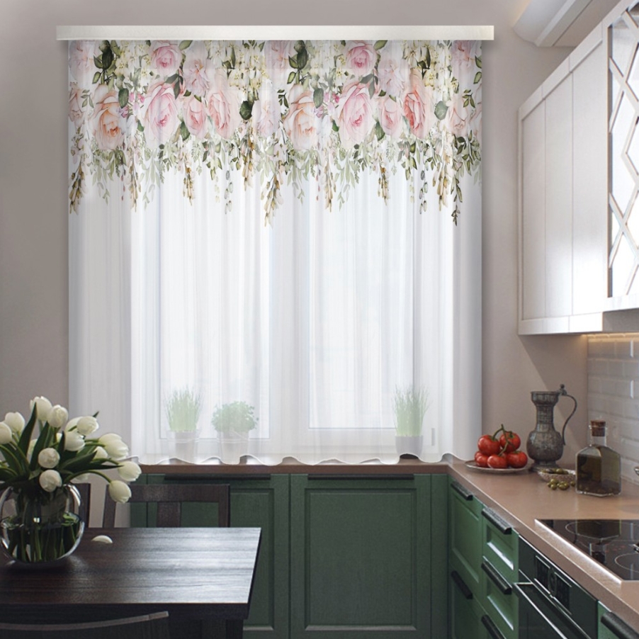При полном разворачивании ткани полностью может закрыть проем. Не влияет на визуальные качества кухни, подходит для любого стиля интерьера, просты в уходе – необходима обычная стирка.