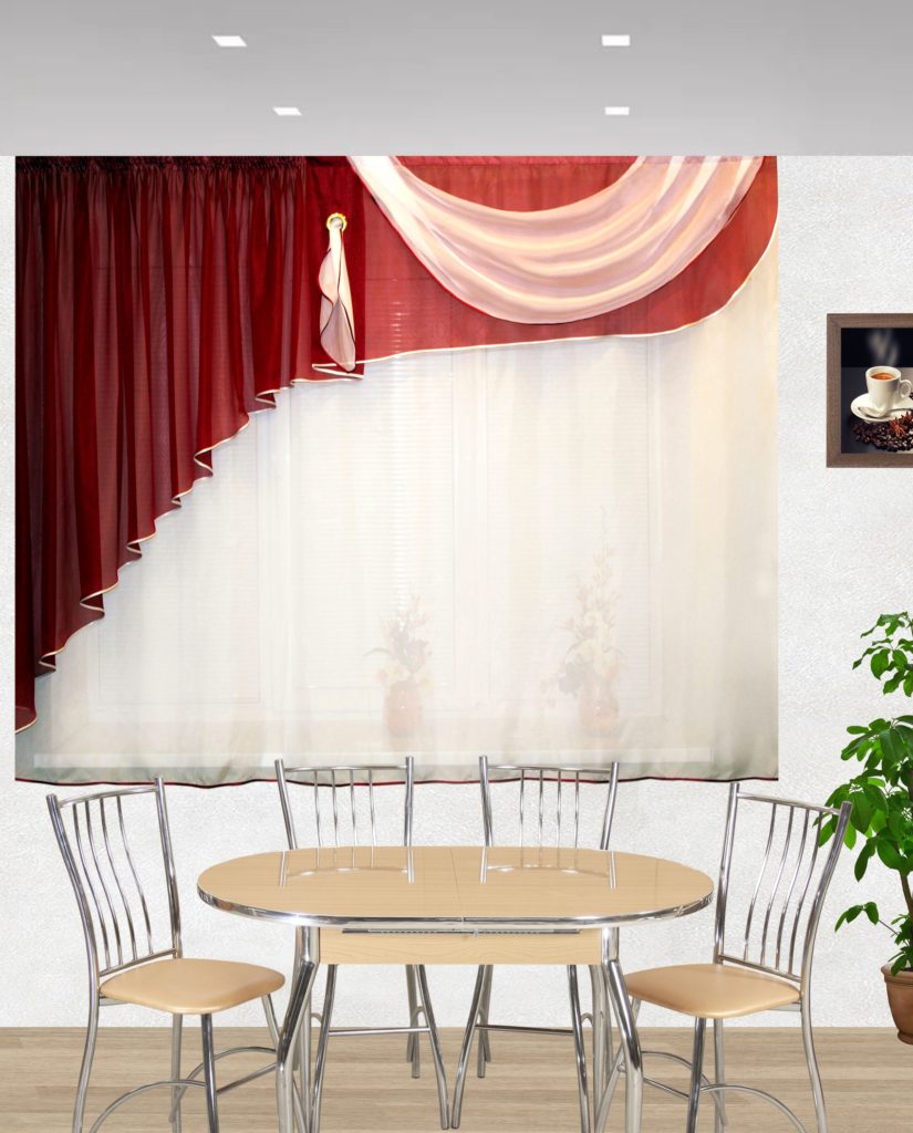 - Органза наполнит кухню легкостью, и позволит зрительно увеличить размеры помещения.