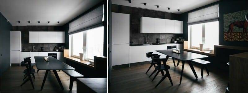 Хорошо, что кухня располагает окнами. Иначе она походила бы на подвальную мастерскую. Впрочем, если не соблюсти грамотное оформление, то соответствующая комната даже с остеклением превратится в цех: достаточно украсить окна длинными и плотными шторами – и вот, интерьер кухни оставляет желать лучшего.
