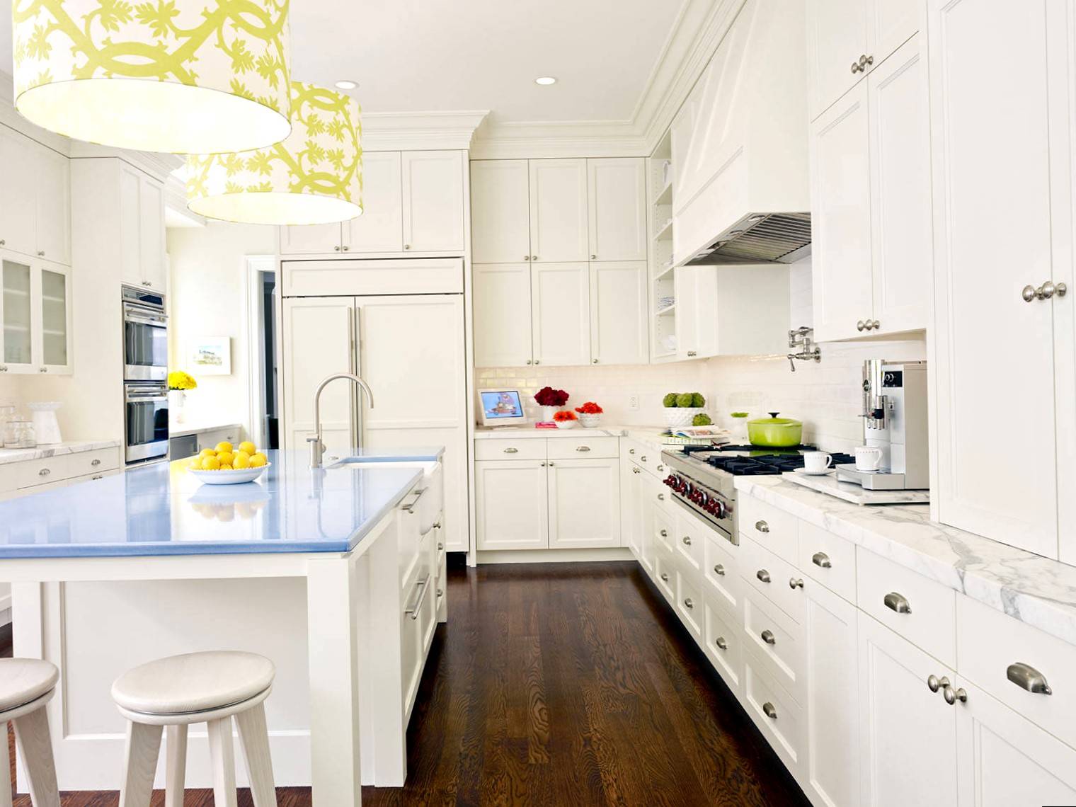Эффективно разбавить холодность и стерильность белоснежного интерьера можно с помощью ярких акцентов. Оживите свою кухню яркой посудой, скатертями, салфетками, подушками. Другой вариант – цветная техника – холодильник, чайник, тостер или кофеварка.