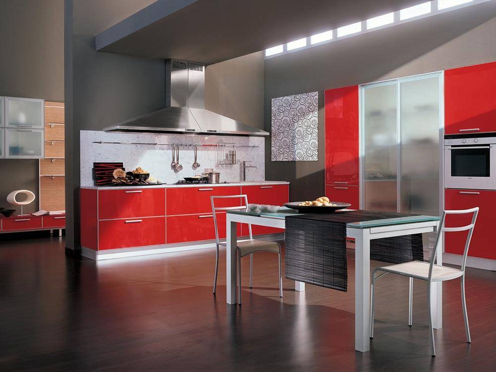 Лучше если это будут кухонные фасады, плитка полы или мебель, но непременно что-то одно. Избыток красного будет угнетающе воздействовать на психику, а многие декоративные элементы на его фоне просто потеряются.