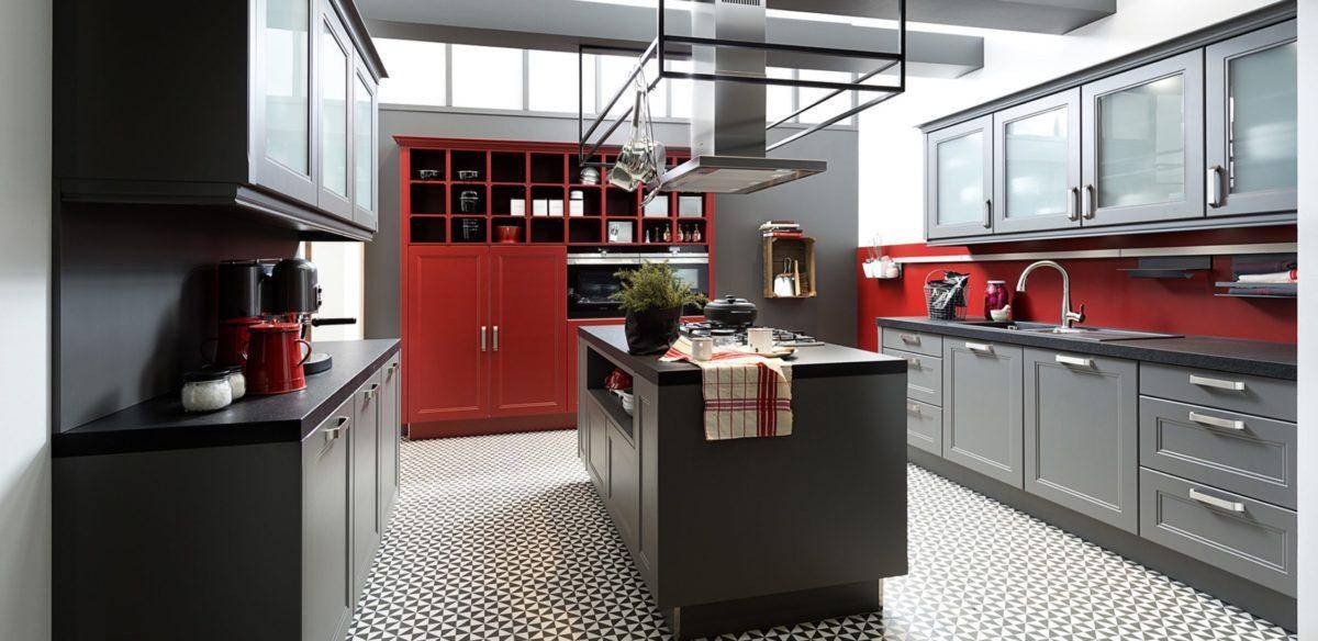 Для красно-серой кухни обычно используются глубокие оттенки серого с фиолетовым подтоном. Их сочетание с сочным алым подходит для кухонь в современных стилях – от простых минималистичных до авангардных вариантов.